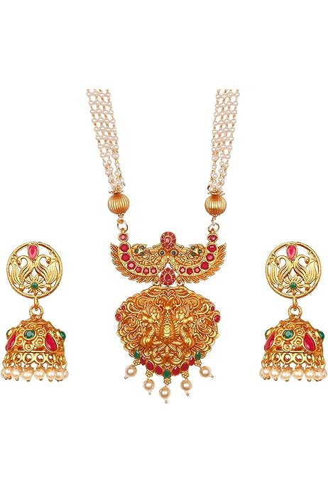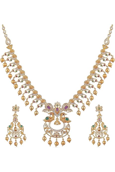 Amazon Com Tarinika Antique Panchi Gold Plated Indian Jewelry Set With Necklace And Earrings White Red Green Clothing Shoes Jewelry